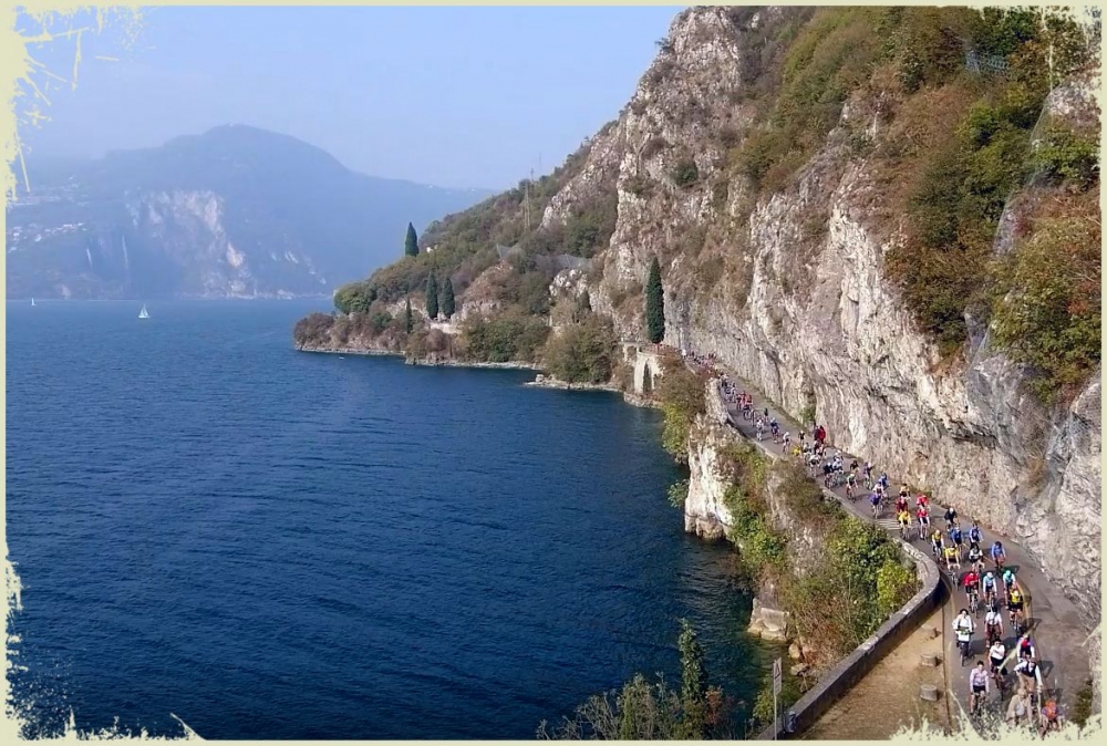 Sulla sponda bresciana dopo il comune di Pisogne verrà percorso il favoloso tratto chiuso al traffico dell'antica litoranea Toline-Vello aperta a ciclisti e pedoni.